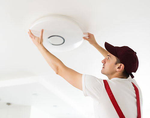 As your reliable and skilled electricians; our professionals ensure the smoke alarm is installed appropriately on the ceiling within 300mm from a light fitting, 400mm from a ceiling fan and approximately 400mm from the nearest AC vent.